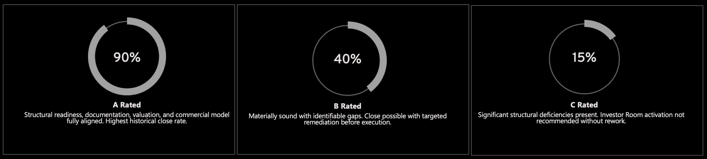 Structured qualification, rating alignment and coordinated investor activation remove the delays that typically stall pre-seed, seed and Series A rounds.