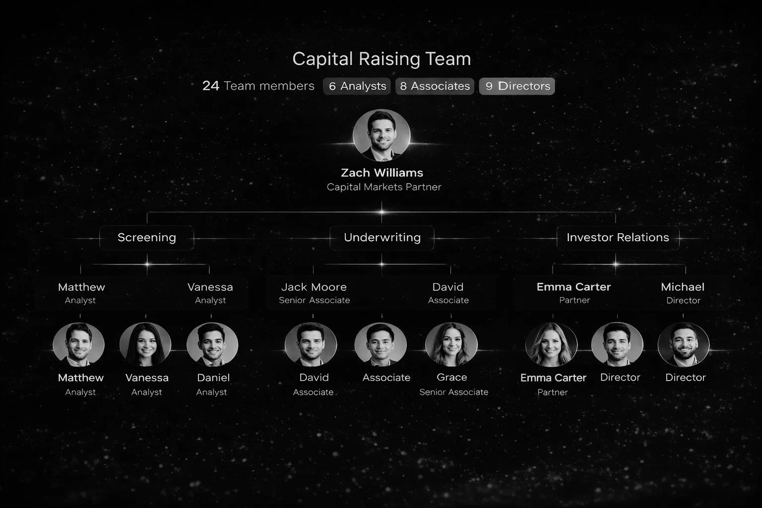• Fundraising workflow oversight • IR coordination